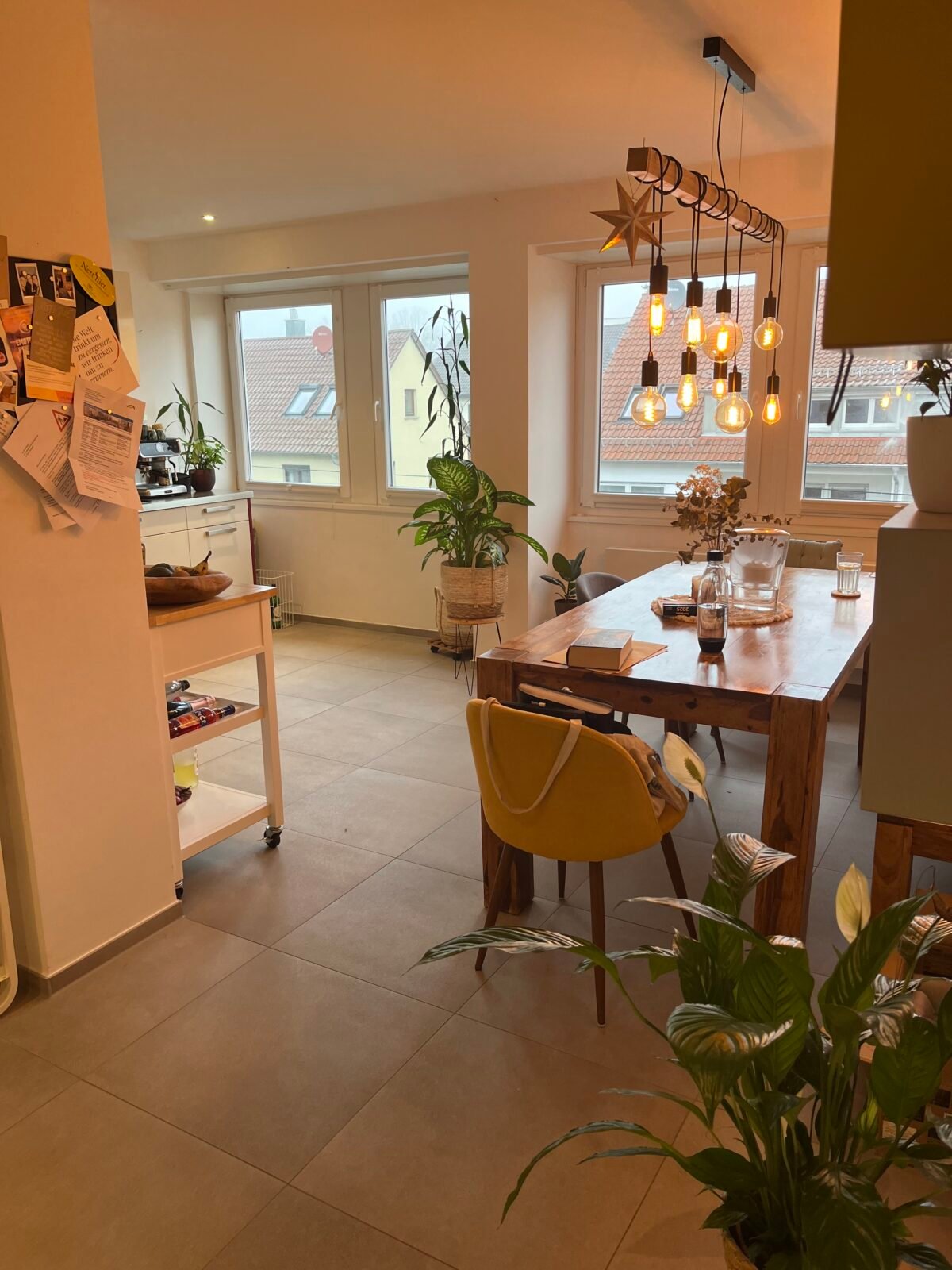 Die WG ist im 2. Stock in einer ruhigen Wohngegend aber doch sehr zentral in Stuttgart Vaihingen. U-Bahn und S-Bahn sind direkt ums Eck. Die Wohnung ist super schön renoviert und alles in einem top Zustand. Und wir haben einen Balkon, was auch super schön ist ☺️