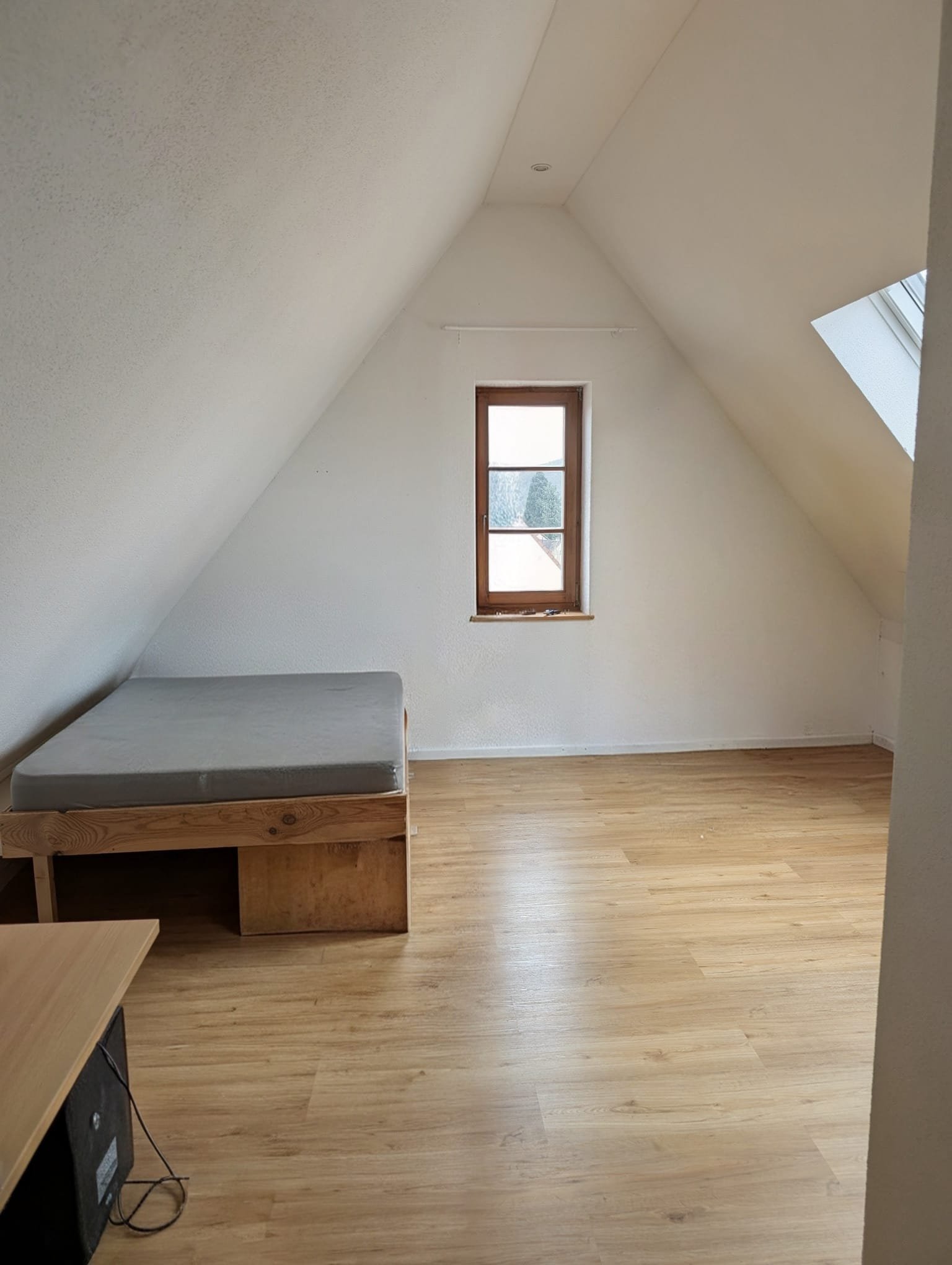 Das Zimmer ist direkt unter dem Dach und hat somit zwei wohnliche Dachschrägen. Einzelne Möbelstücke können vom Vormieter übernommen werden.