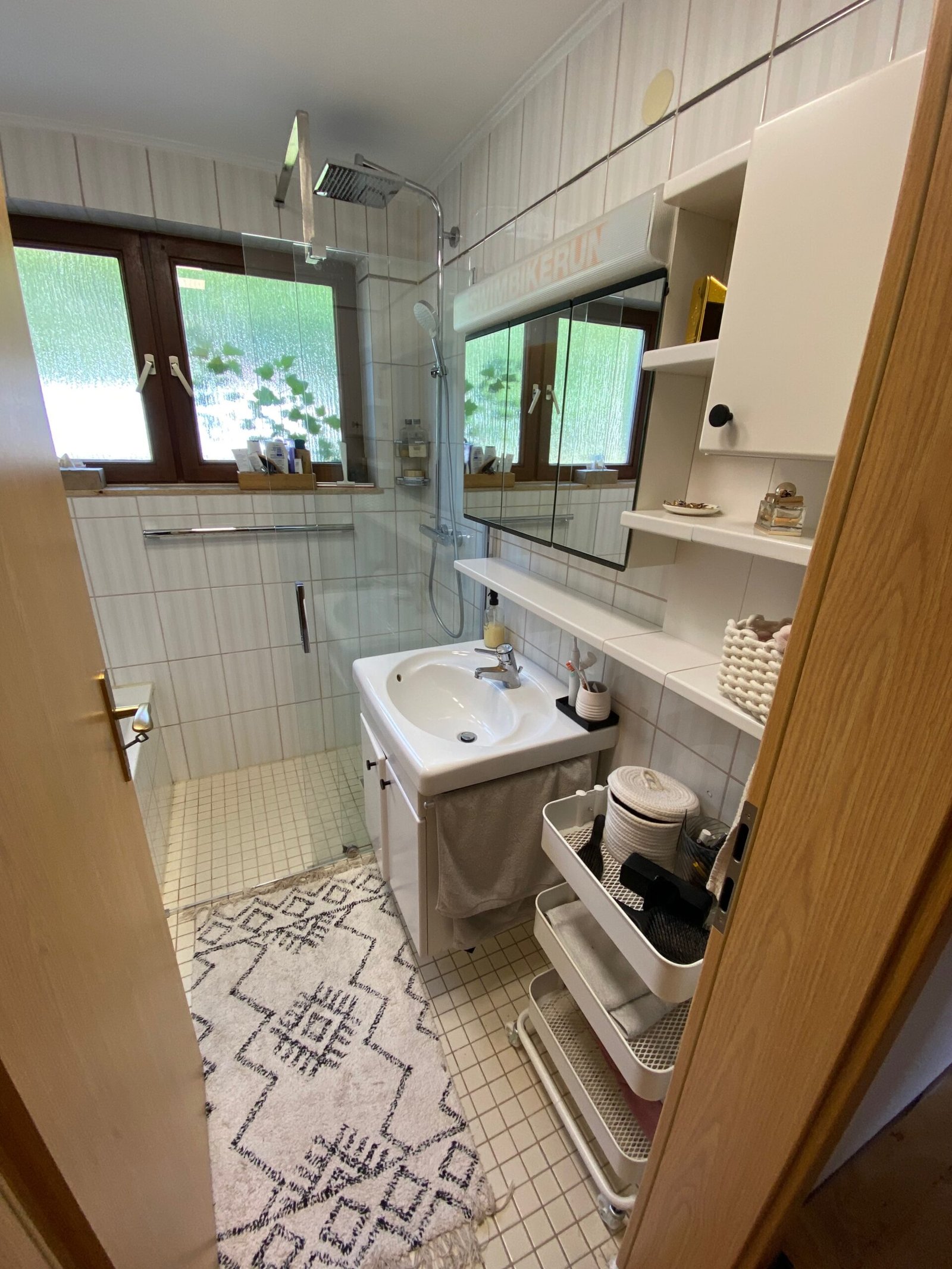 Die Ausstattung umfasst moderne Infrarotheizungen sowie einen gemütlichen Holzkachelofen. Zur Wohnung gehört außerdem anteilig eine Abstellfläche im Keller sowie ein eigener Platz für Waschmaschine und Trockner.