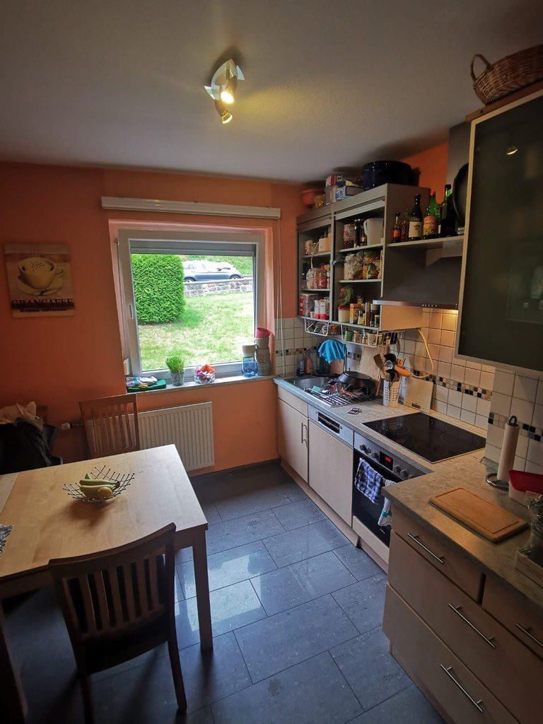 Die Küche ist gut ausgestattet und neben dem Bad haben wir auch ein Wohnzimmer zusammen. Eine Waschmaschine gibt’s seit gestern auch, sodass du echt nicht mehr viel mitbringen bräuchtest.