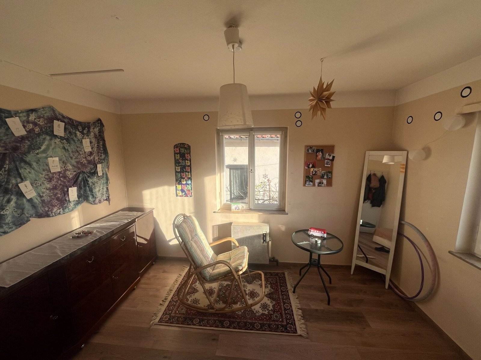 Das Zimmer enthält keine Möbel – eine große Kommode kannst du nach Wunsch jedoch übernehmen.