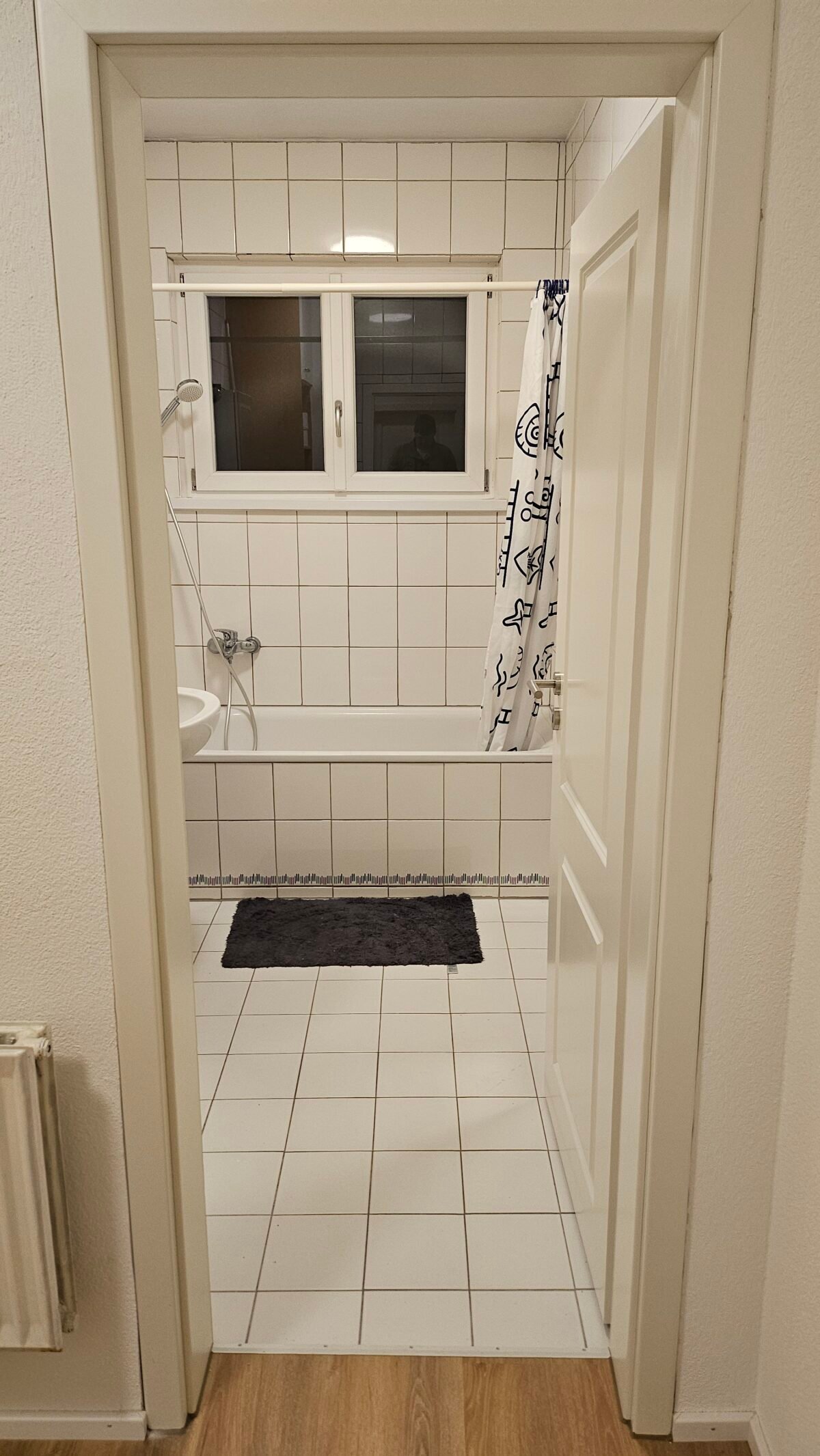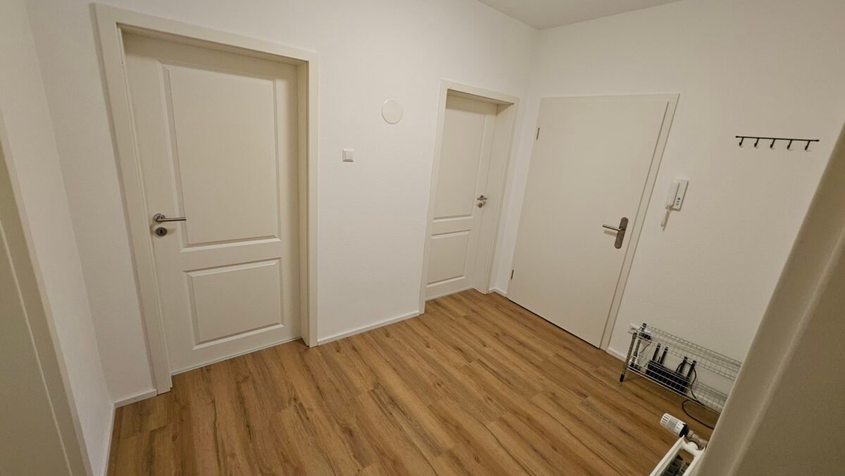 Ein separater Eingang ermöglicht einen unabhängigen Zugang zur Wohnung, ohne durch die Gemeinderäume gehen zu müssen. Zudem gehört ein kleiner Garten zur Wohnung, der mitgenutzt werden kann.