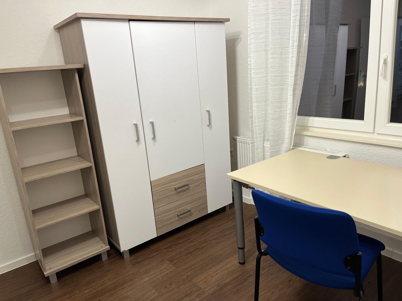 Alle Zimmer werden möbliert übergeben – ausgestattet mit Bett, Schreibtisch, Kleiderschrank und Bücherregal.