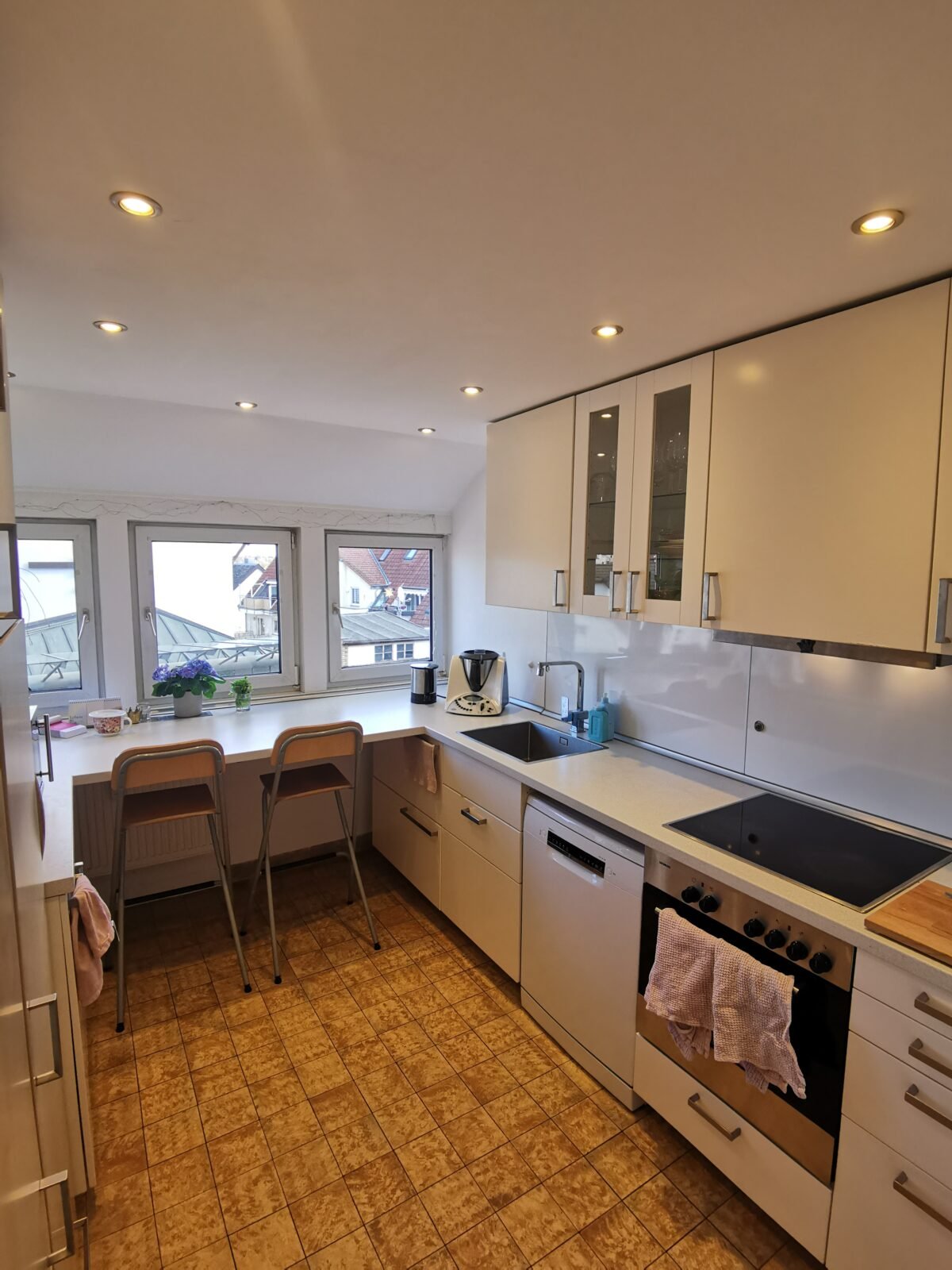 Die Wohnung hat ein großes Wohnzimmer, schöne Küche, Tageslichtbad mit Wanne und ein kleines Arbeits-/Hobbyzimmer. Sie liegt im Dachgeschoss. Im Innenhof gibt es eine Sitzmöglichkeit. Die Anbindung und Infrastruktur sind perfekt. Das frei werdende Zimmer hat 2 Fenster. Die Wohnung liegt in Zuffenhausen.