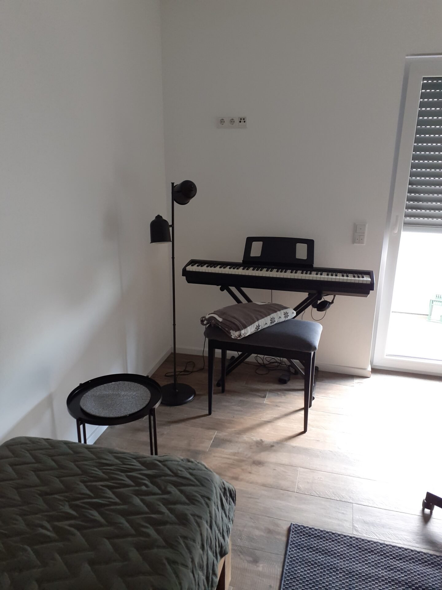 Das zu vergebene Zimmer ist 14,5 m² groß mit Zugang zu einem kleinen Balkon. Das Zimmer wird unmöbliert vermietet – bis auf einen weißen Kleiderschrank, der Bestandteil des Zimmers ist.