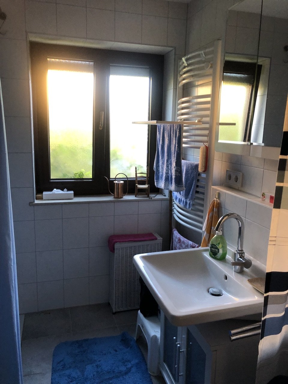 Kühlschrank ist im Bad.